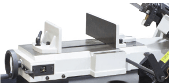 Пильную раму возможно установить в вертикальном положении - для резки небольших изделий из дерева, пластмассы и других заготовок из мягких материалов (для которых не требуется фиксация в тисках во время пиления), при этом станок обязательно должен крепиться к полу. В стандартной комплектации имеется небольшой стол для ручной подачи заготовок, который крепится к раме в вертикальном положении. |
